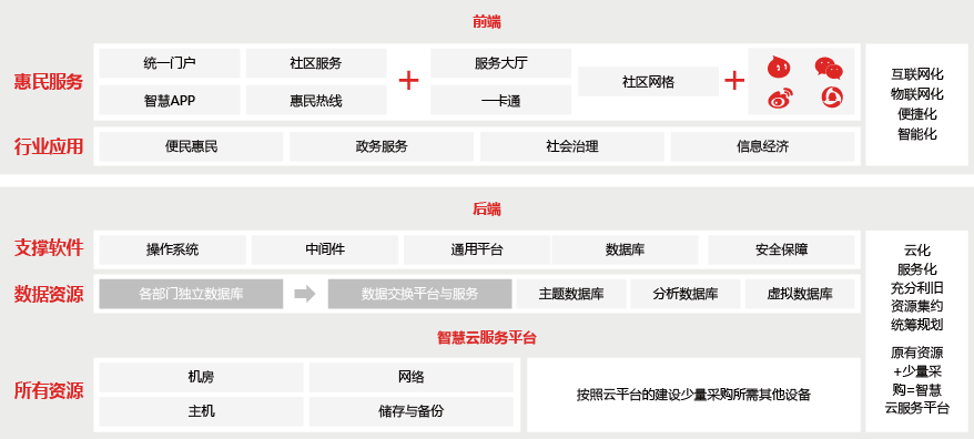 在某市凝練打造的新型智慧城市,率先探索技術、業務和數據融合,以數據為核心實現惠民服務和社會治理,以“大統籌、重應用、低成本、高效率”的建設模式契合國內中小城市智慧城市建設的痛點和難點。